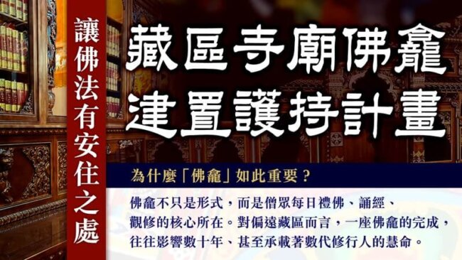 什麼是佛龕?為什麼「佛龕」如此重要?|藏區寺廟佛龕建置護持計畫 最新文章[email protected]2026/03/02因「全球供千僧道糧」護持,我們得以深入了解藏區多處寺廟修行現況。然而在實地了解後,我們發現其中不乏已經建造數百…