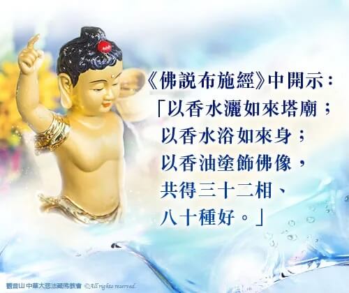 慈悲 龍德上師開示:「這世界從來不缺犀利勁爆的喧鬧,需要的是淨化人心的清流!」一勺清水浴佛,洗滌煩惱垢染、淨化…