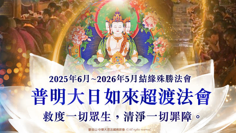 佛陀住世說法四十九年,唯一由佛陀親口宣說的超渡法,只有「大日如來超渡法」,屬於四部密法中瑜伽部的主要法門。此法可淨除亡故者重大的惡業罪障,中陰身之顛倒痛苦當下消除,能成就受用身。