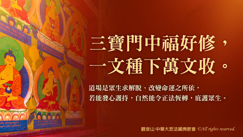 道場,代表上師、佛、法、僧常住,也就是佛法在這人世間教化眾生的聖地。佛法能廣揚弘傳,是無盡眾生福報利益綿延之根源。也因此,道場至關重要。