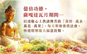 ▣ 2026年5月17日~6月15日 億倍功德‧薩嘎達瓦月‧天天薈供 共同成就「萬燈、萬水、萬花、萬果」供佛功德